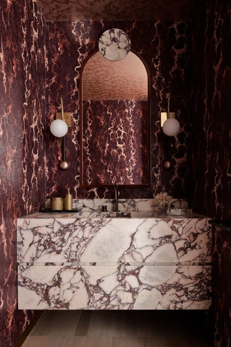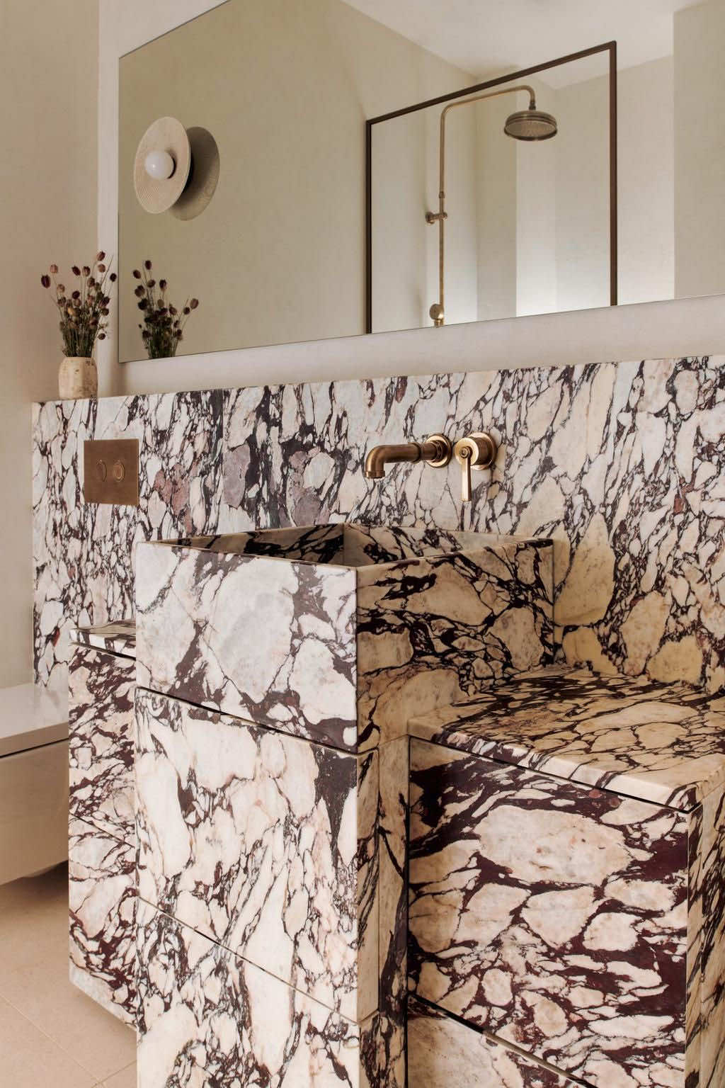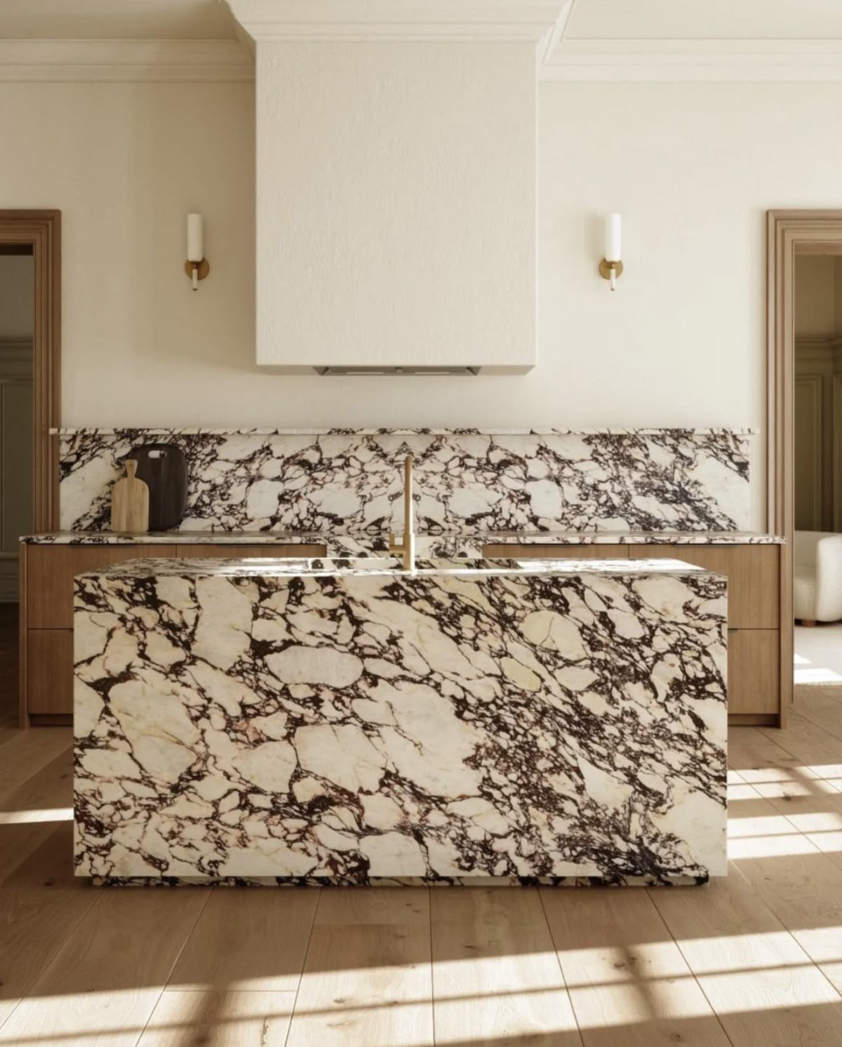 Calacatta Viola is a type of marble that originates from Italy. It is renowned for its unique veins and delicate colors, with the main feature being large veins in gray or lavender hues on a white or beige base. These veins make each stone unique.