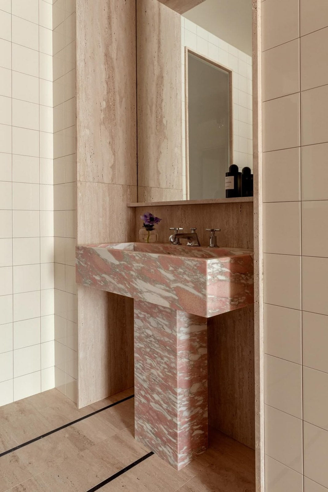 A Natural Gem from Norway captivates with its unique pink allure, where the soft pink base tone perfectly complements the delicate white veins creating a striking texture.